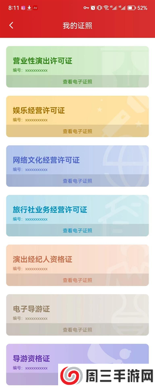 文化和旅游经营主体、从业人员可通过应用进行实名实人认证后申领电子证照,并进行扫码亮证、查看原件、查询详情等应用,对证照信息有异议的可进行线上纠错。