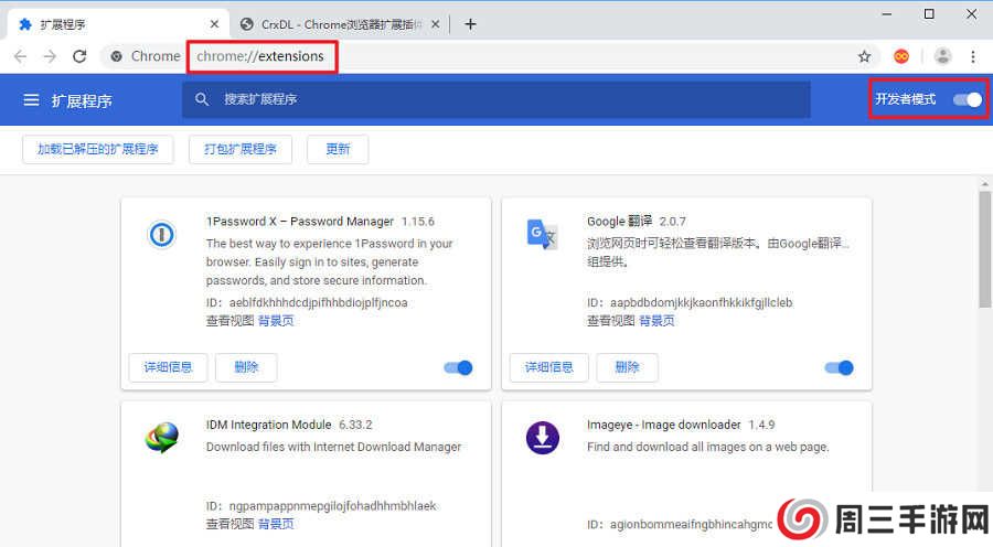 或者在浏览器的地址栏中输入 chrome://extensions/, 然后回车也行: