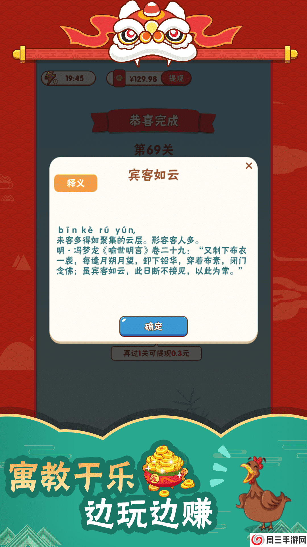 2. 趣味互动:游戏采用生动的动画效果和音效,增强了玩家的游戏体验,使学习成语变得更加有趣。