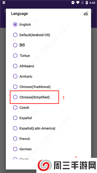 1、许多人问1DM+安卓怎么该中文,下载安装完成后首次运行就会提示设置语言,选“chinese(simp)”点击select接口