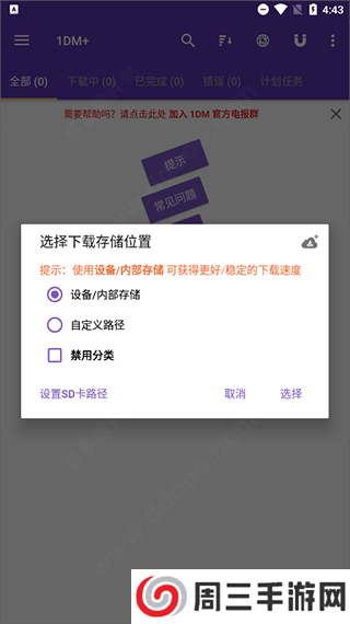 2、接着设置下载存储位置