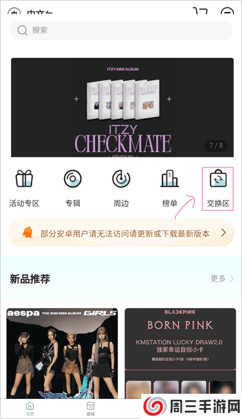 1、首先在首页的功能区选择“交换区”