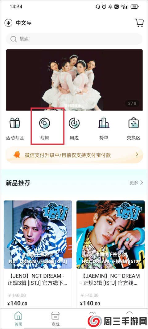 2、你可以根据专辑的类别来找到你喜欢的偶像专辑,也可以通过搜索功能找到,找到之后点击专辑的展示页面。