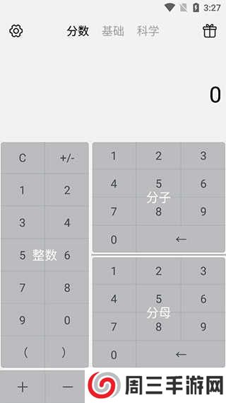 1、在本站下载安装好软件后,点击进入,键盘上有整数区、分子区、分母区以及运算符号。