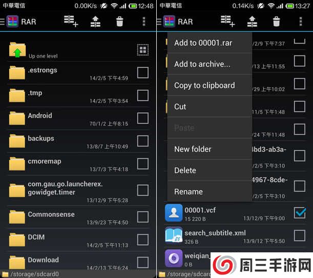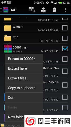 1、完成安装,开启后,会列出手机裡的所有资料夹与档案,长按要压缩的档案或资料夹,便会出现选项供你操作。