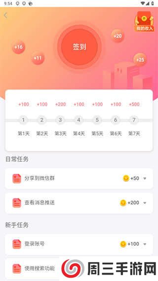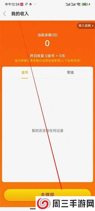 3、获得的金币可以点击右上方的我的收入进行提现