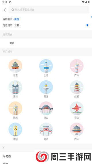 2、点击上方的城市,然后选择定位自己所在的城市