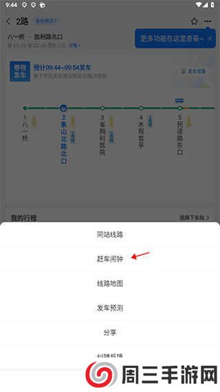 2、然后点击右上角的三个点,选择赶车闹钟