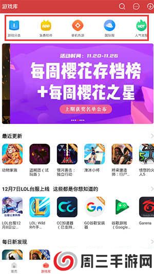 3、点开游戏库,有游戏分类、免费软件、单机热游、国际服等多种类型的游戏推荐;