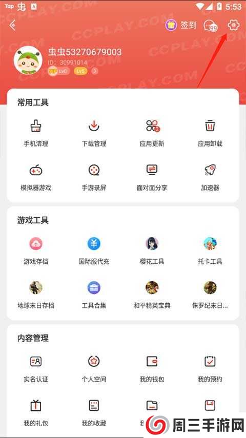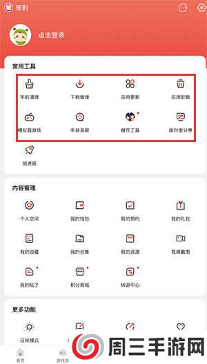 6、点开我的,有手机清理、下载管理、应用更新/卸载、加速器等。