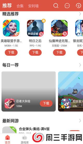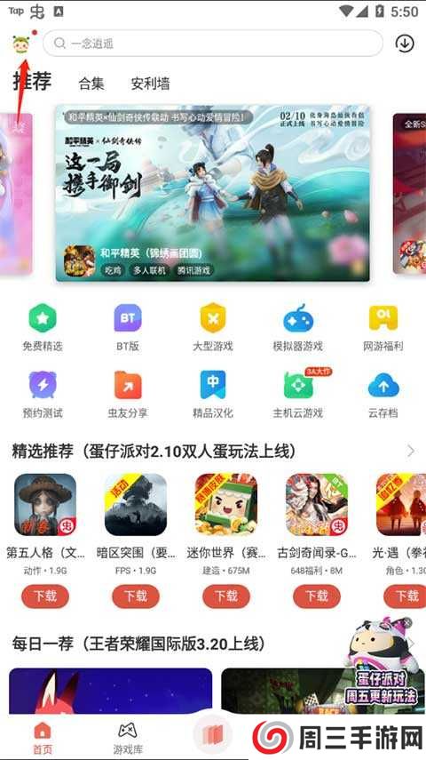 1、在本站下载安装虫虫助手安卓版,运行软件,可以看到有首页、游戏库、排行、发现、我的五个板块;