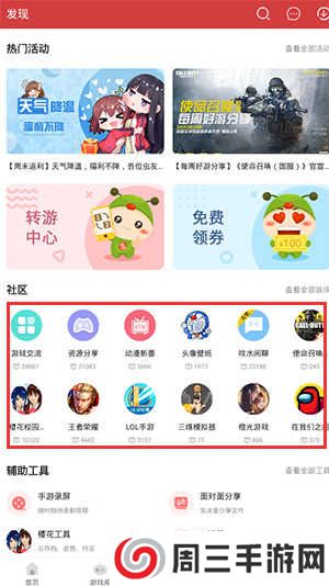 5、点开发现,有平台推荐的热门活动,还有游戏社区,玩家可以社区相互交流;