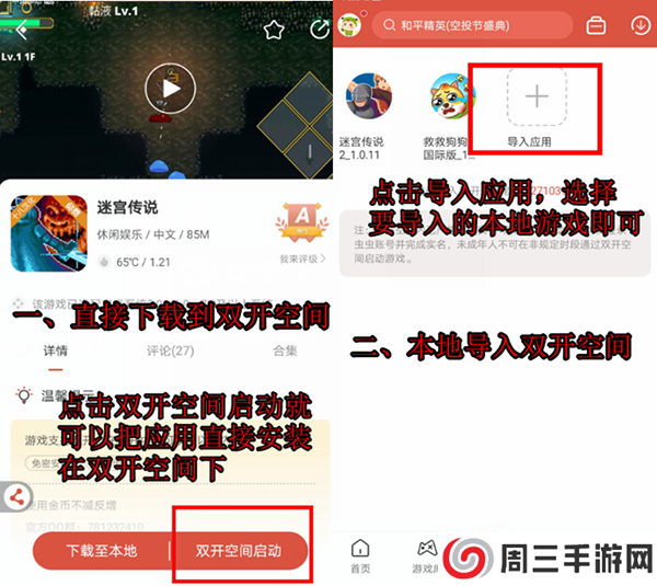 在游戏详情页点击双开空间启动就可以把应用安装在双开空间下