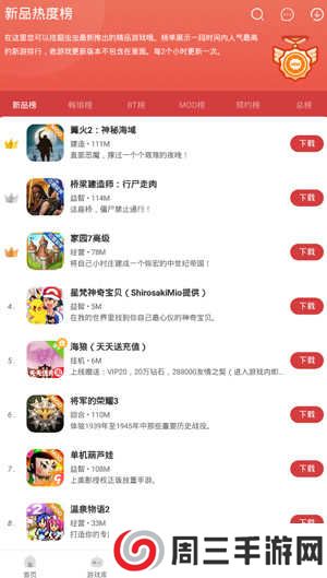4、点开排行,有新品榜、畅销榜、BT榜、MOD榜、预约榜等多种游戏排行榜供玩家选择;