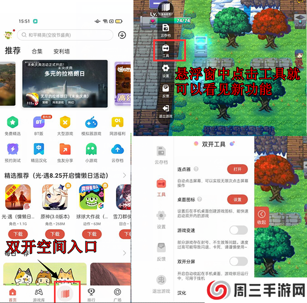 在双开空间打开游戏后点击双开悬浮窗就可以看见工具栏,点开就可以看见这次更新的新功能了