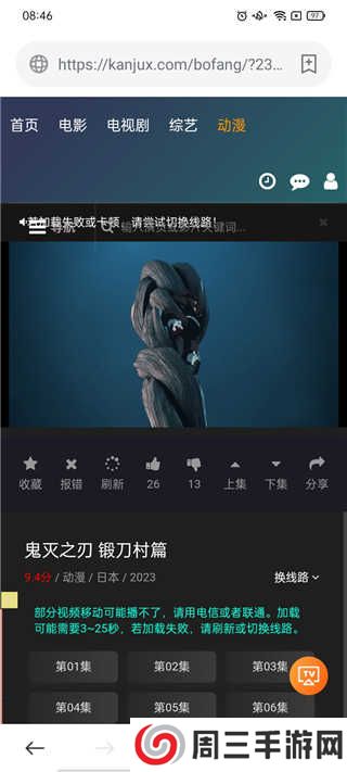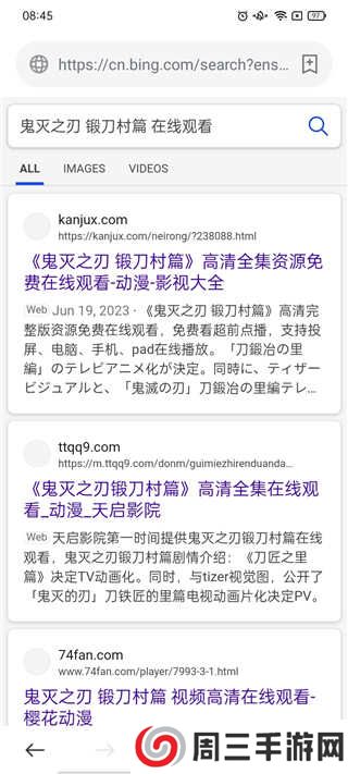 6.软件只提供搜索功能,并不提供播放功能,这里小编以鬼灭之刃最新章为例子;