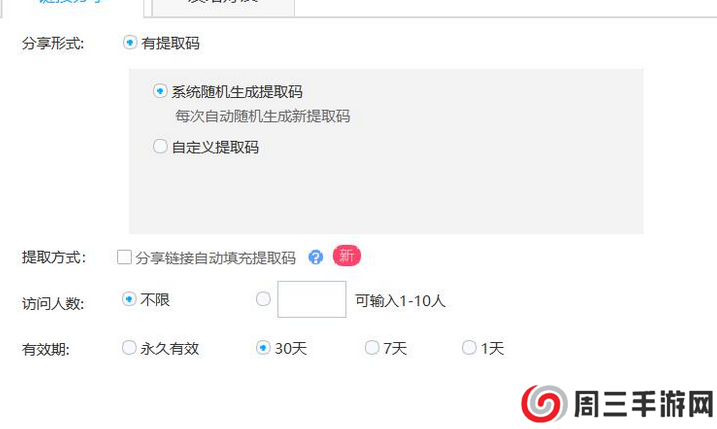 分享文件,需要创建链接,分享的形式选择有提取码,有效期选择30天,然后选择创建链接。