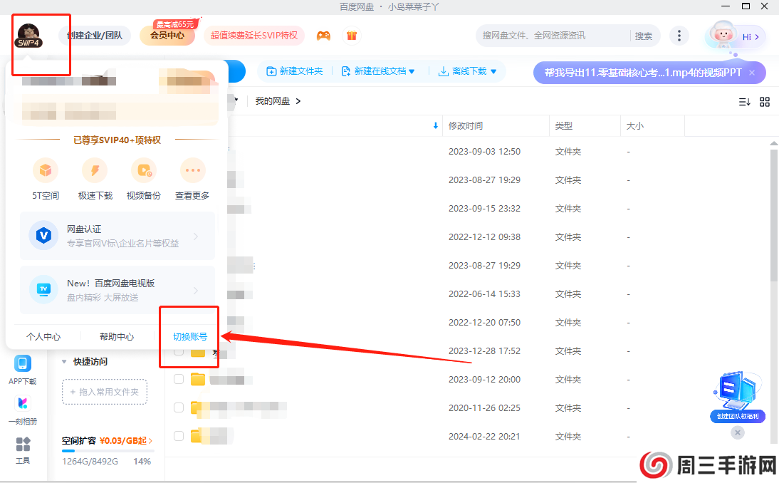 首先打开百度网盘,登录自己的账号以后看到我的百度网盘里面有很多的资料。