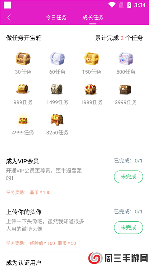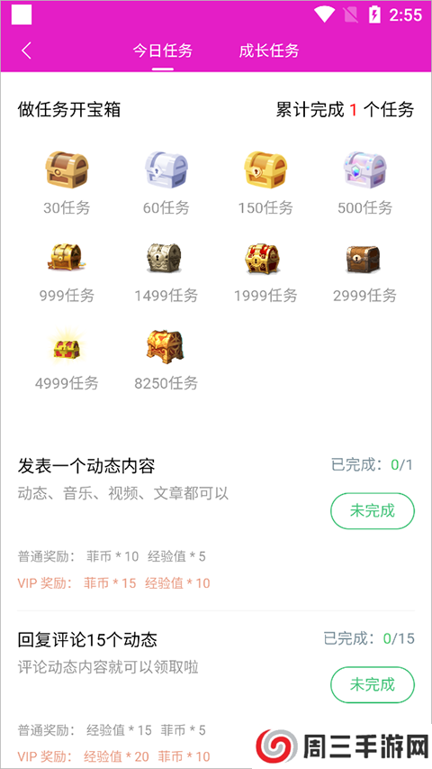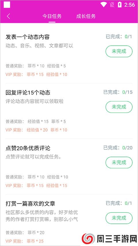 4、不过还有一些“成长任务”,这里的获得就能够获得菲币数量比较多哦。
