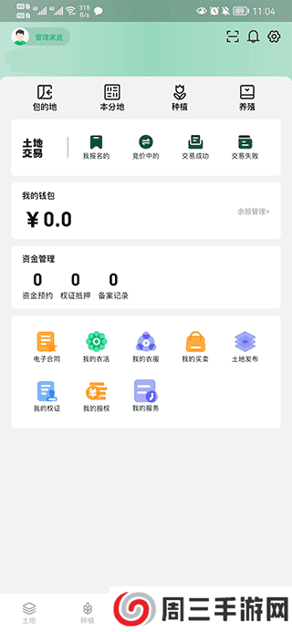 5、打开个人中心,查看自己的地块信息,在线登记种植和养殖内容