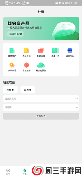 3、点击种植,查看自己的种植信息,快速进行种植登记,购买农资
