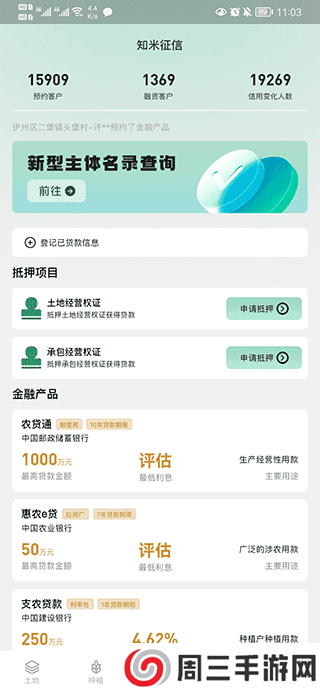 4、进入征信版块,查看自己的信用信息,快速查看各种推荐种植户信息