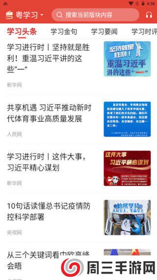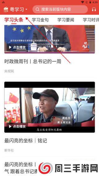 3、进入到粤学习版块这边大部分都是党的重要指示精神之类的文章