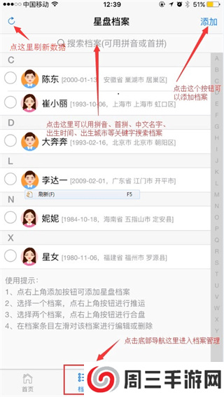 点击app底部导航“档案”即可进入星盘档案管理页面,如果你还没有登录,请先登录