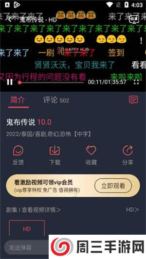 4.在观看的过程中我们可以打开弹幕、下载、收藏、分享等。