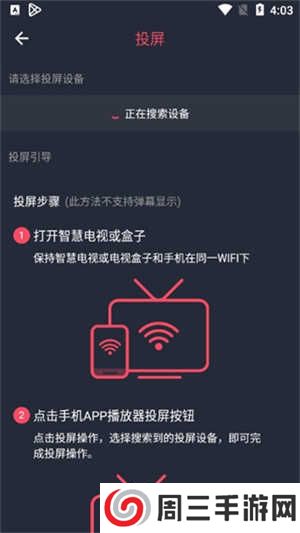 5.同时支持投屏功能,打开后软件会自动搜索投屏的设备,绑定投屏设备后就可以享受大屏高清的画面了。