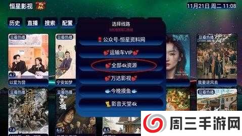 3.接着“恒星资料网1.恒星资料网2.恒星资料网3”选一个进入,让选择线路,随便点一个,比如“全部4K资源”。