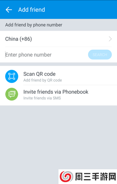 1、首先选择选项add friend,输入对方绑定的手机账号搜索添加,