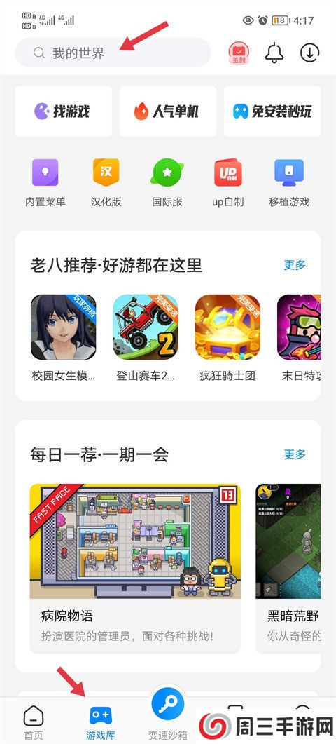 1、点击软件进入到游戏库当中,在搜索框当中输入想要玩的游戏名字。