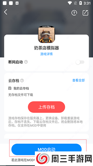 1、在应用首页点MOD按钮。