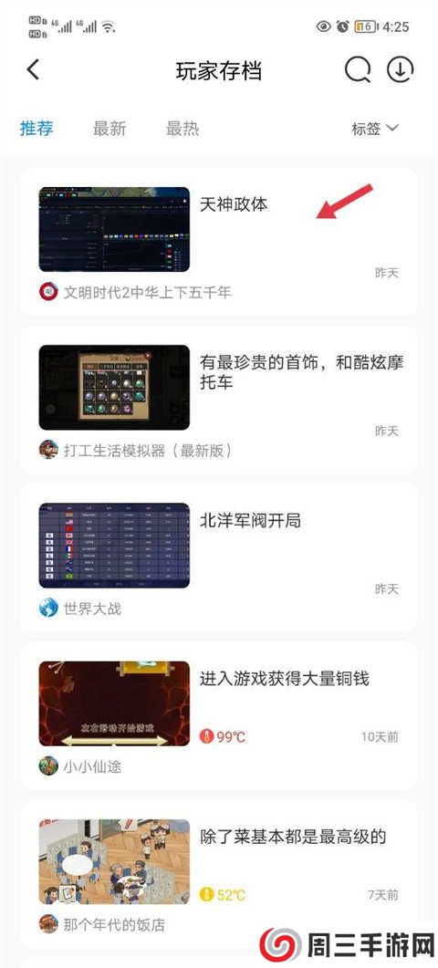 2、然后选择你需要体验的游戏存档进入。